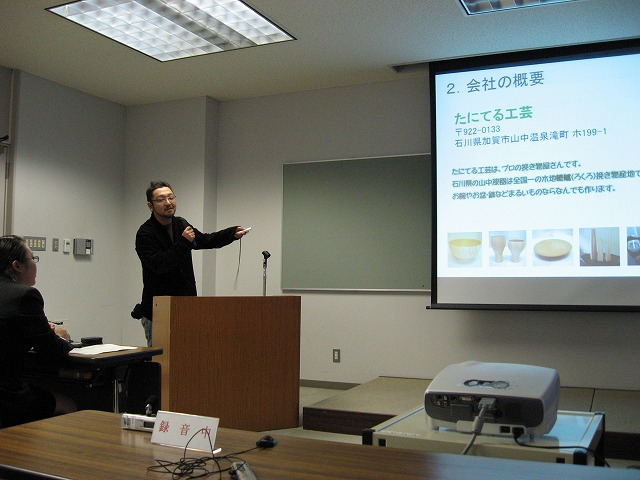 先週の土曜日は金沢で伝統工芸MOTコースの成果報告会でした。僕達はプレゼンの時間を10分間もらったのですが二人とも話してる最中に頭の中が真っ白になってしまいました。 僕達は普段、仕事をしている時は引きこもり状態なので、あんなに大勢の人を前に話すのはかなり緊張しました。前日は二人で頑張って練習したのに…。il||li▂█▀ฺ█●il||li 本当に限られた時間の中で人に解りやすく伝える難しさを知った二人でした。 そしてこんな二人に何度も夕方から夜遅くまで資料作りを手伝ってくれた緒方先生には本当に感謝です。