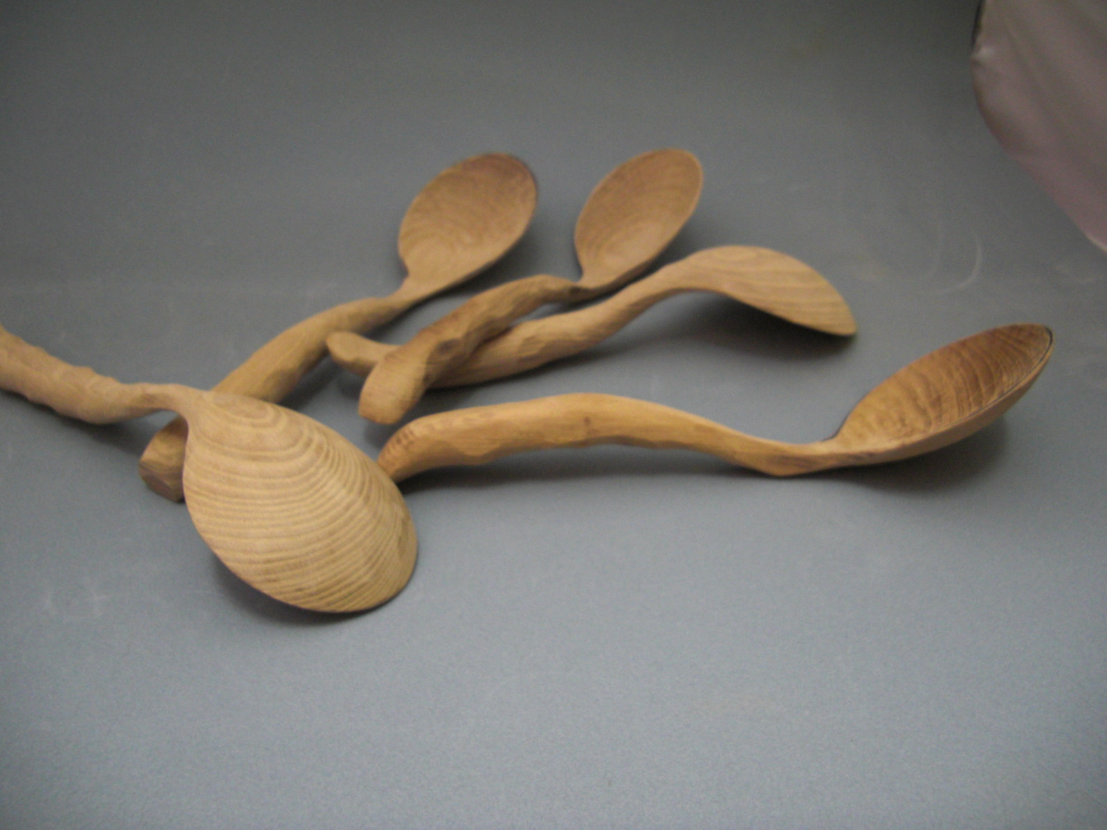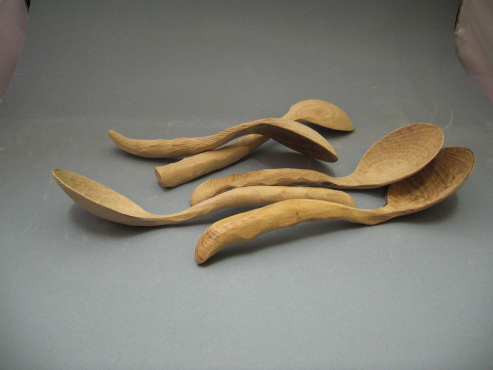 やっと出来ました…。1個1個形も大きさも違いますが、材料は欅で、さじのふちに布巻きをし、さびで目止め、仕上げは木地呂に塗ります。器とともに塗りあがり、仕上がるにはまだ日数が…。半年以上お待ちいただいているので申し訳なくて…。