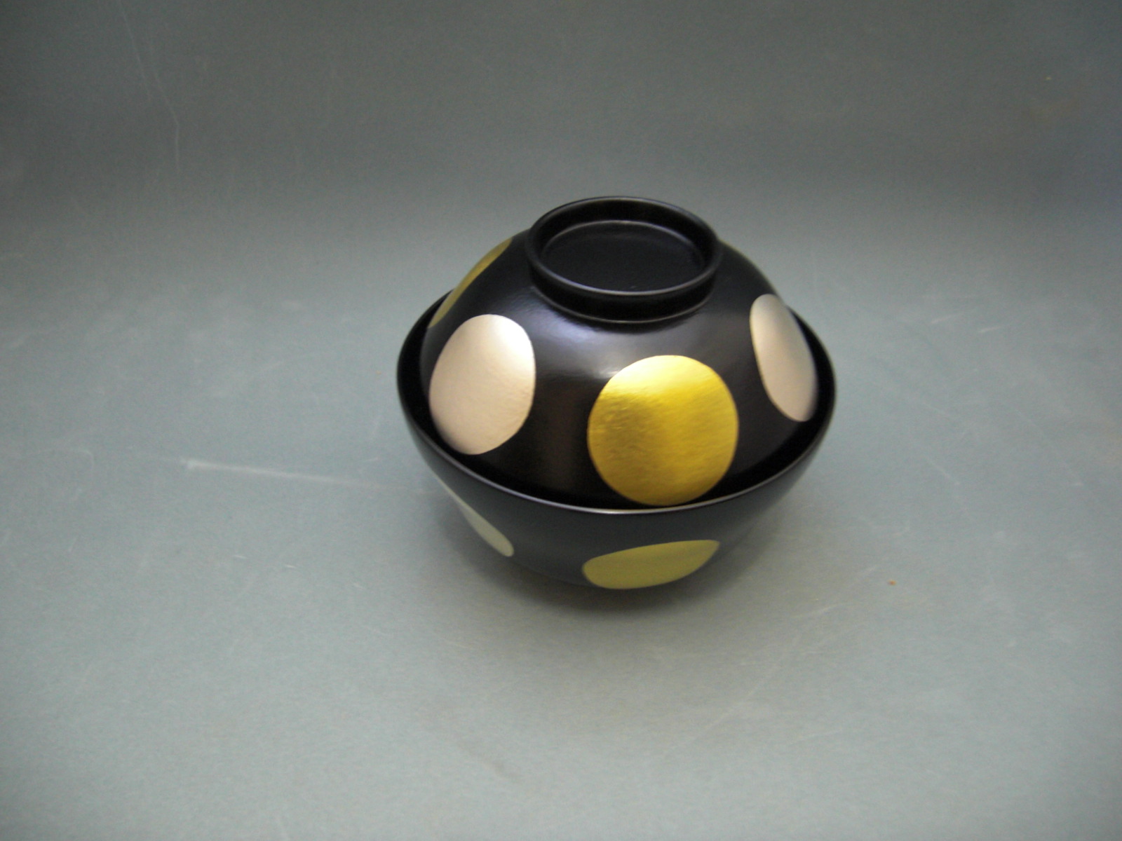 本来ならとっくに納品されていなければならないのにお客様には相当待っていただきました。それというのもこの椀、蒔絵の井上元揮君のところに長い間逗留していました…。よっぽど元揮君の工房の居心地が良かったのか…。若葉の頃に行ったきり中秋の名月まで帰ってきませんでした。そのかわり上出来の日月蒔絵でした。
