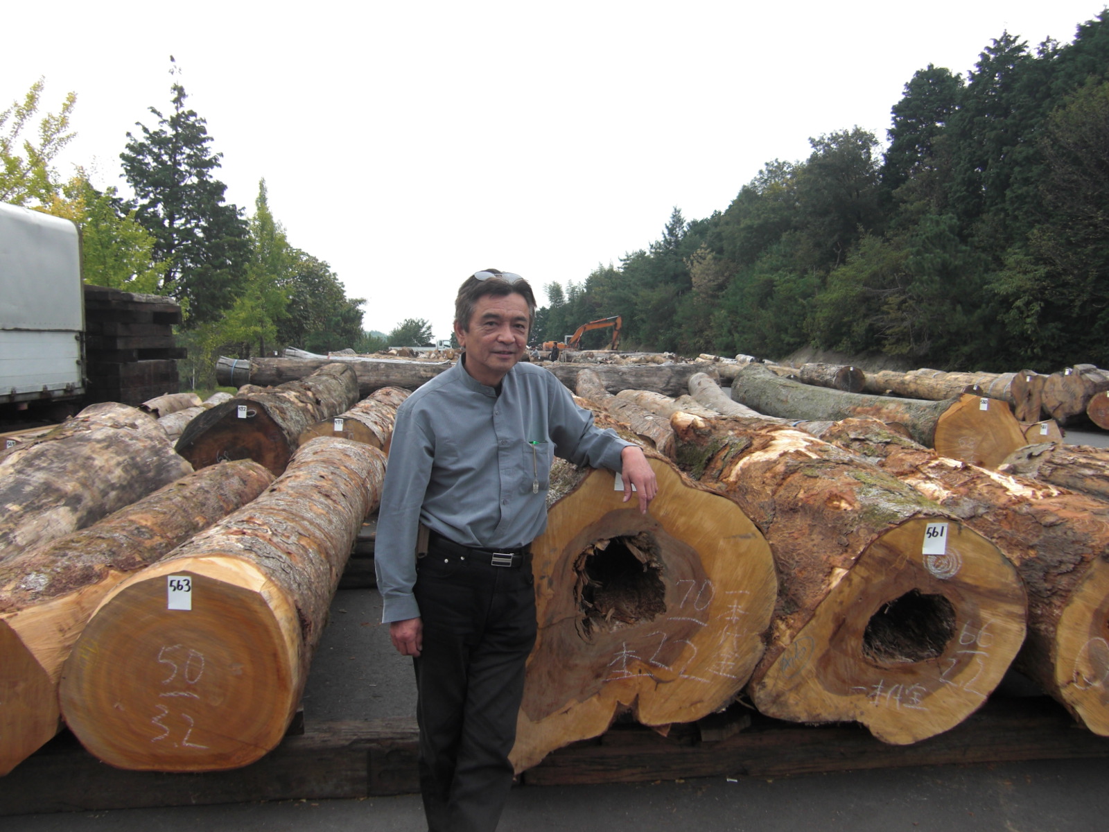 岐阜県各務原(かかみがはら)市の材木市へ、生産組合の職員、理事で原木の買い付けに行ってきました。