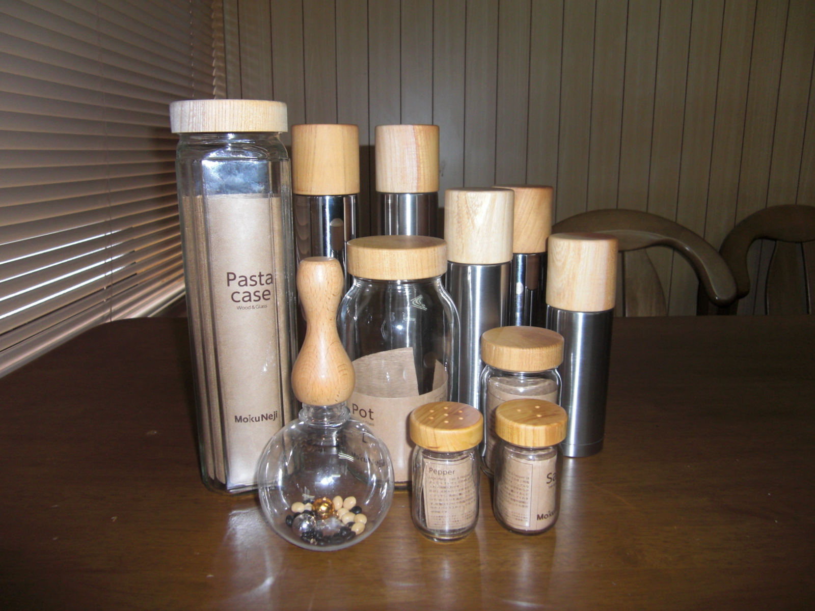 ●パスタ、他のビンに温もりある木のフタを…。