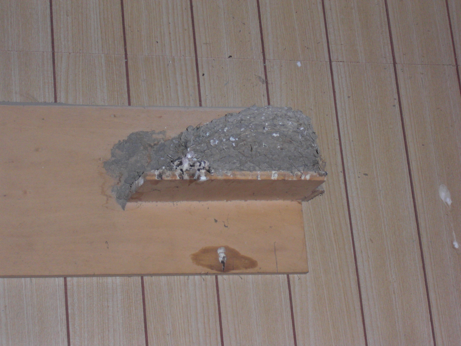 蛇などに襲われないように巣の場所を作るけど、なかなかそこには作ってくれません…。1か所だけ用意した場所に作ってくれましたが、それは事務所出入り口のすぐ上…。やっぱり人間の近くにいて身を守る本能的な行動をとるんですね…。