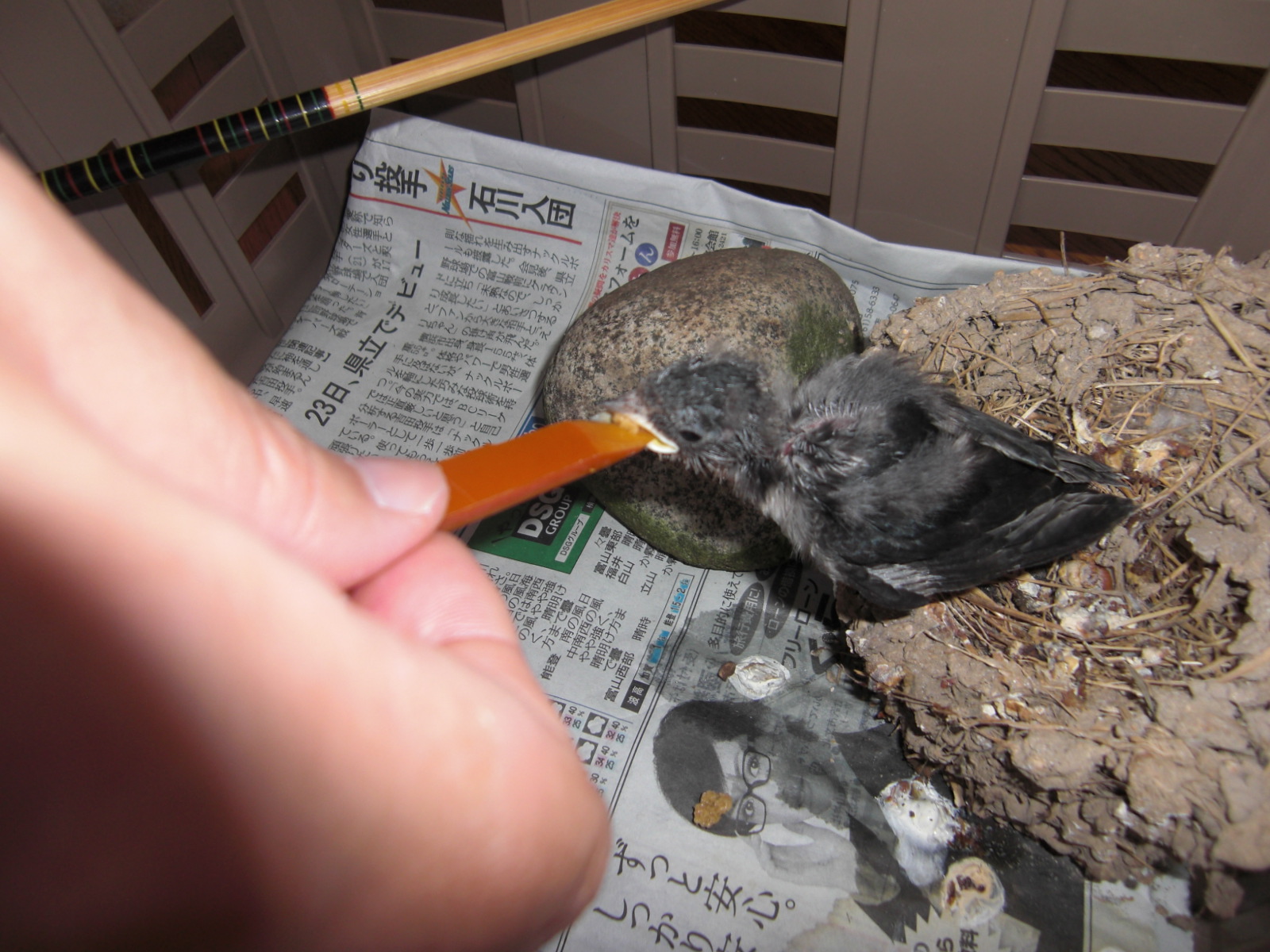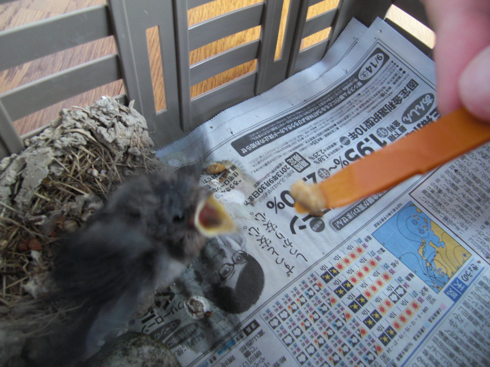 落下したひなをどうしたものか…。