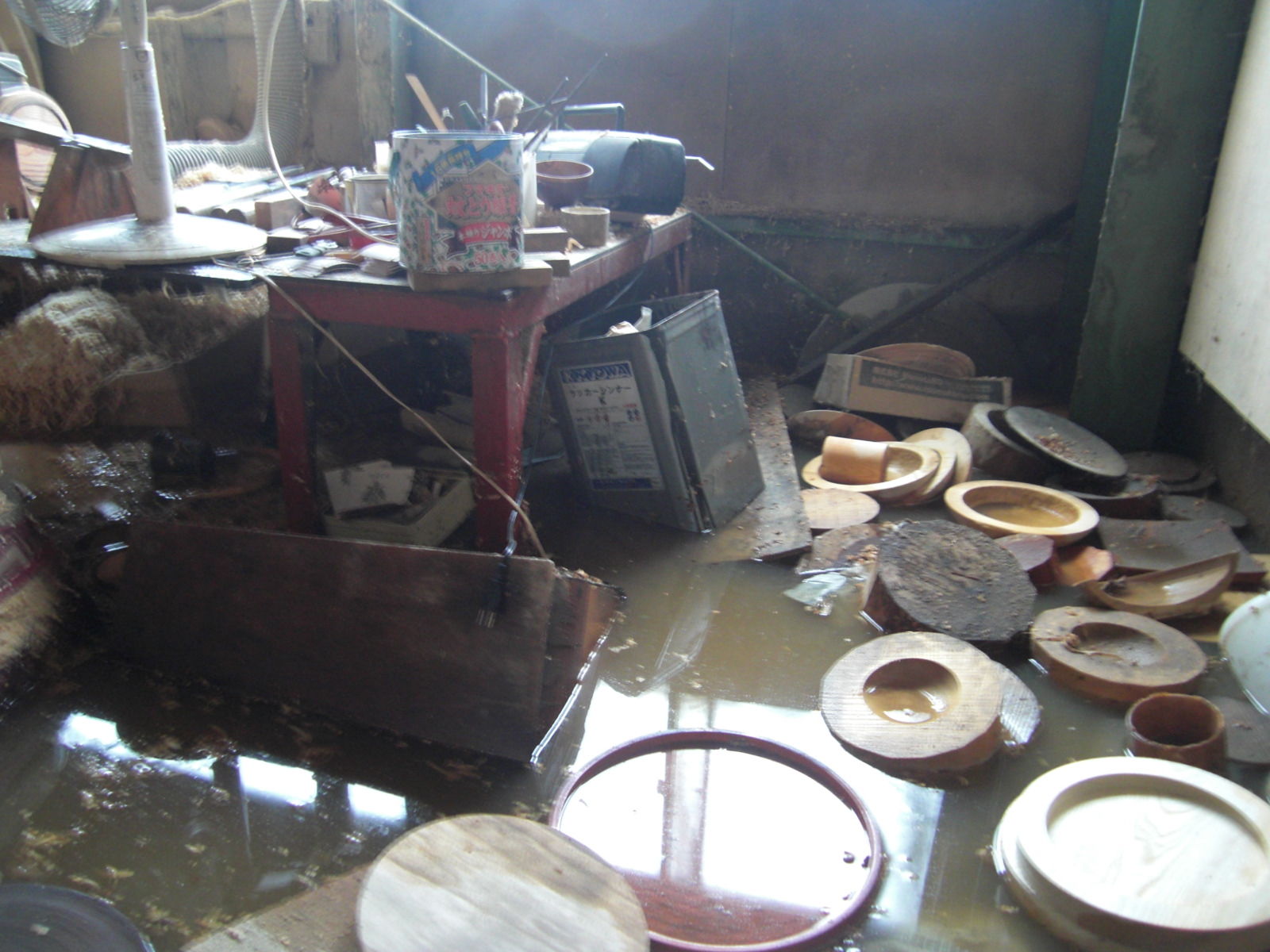9月16日未明の大雨で黒瀬工房が水没です…。