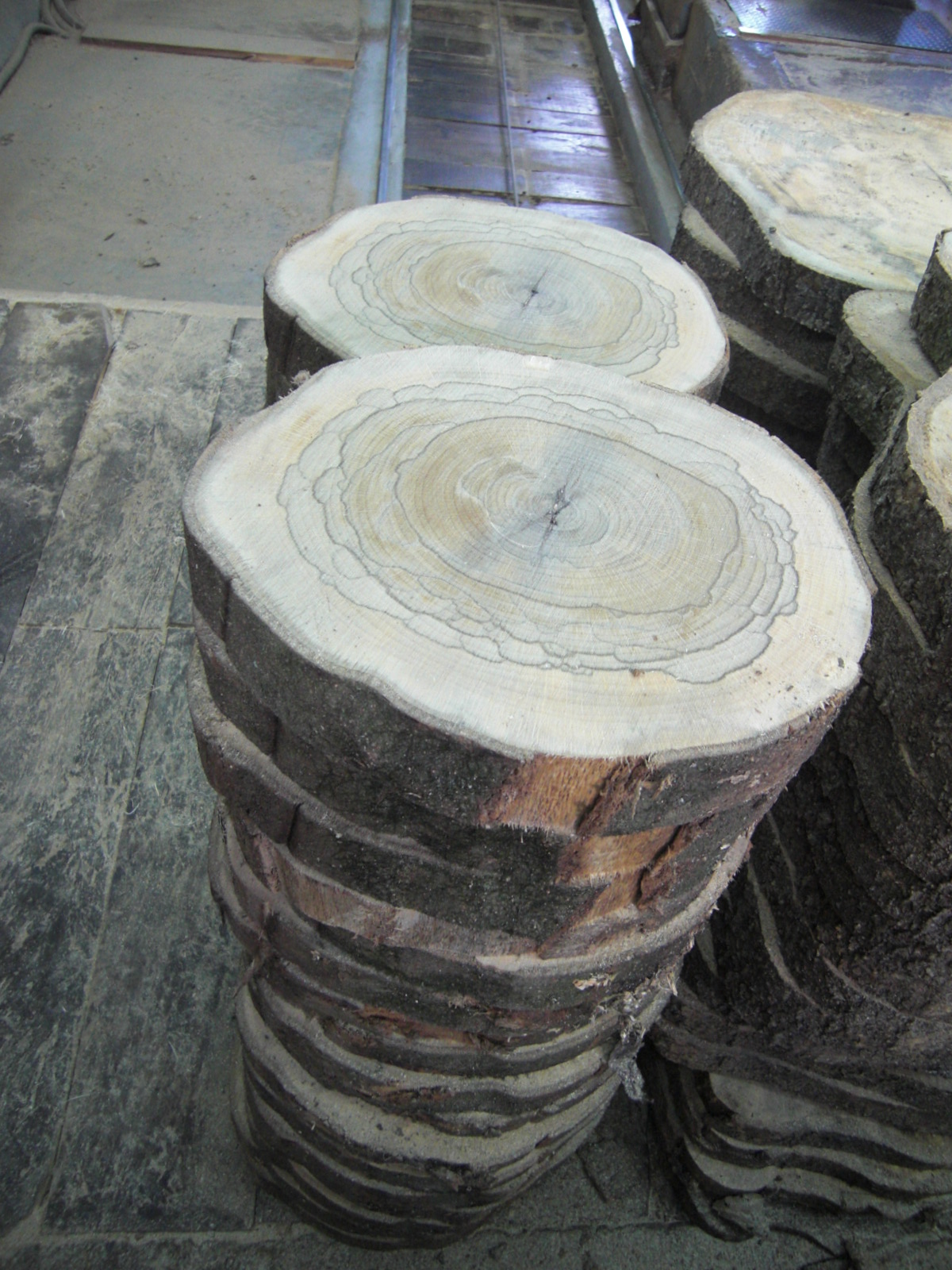 原木の外見からは面白い杢が入っているかいないか、なかなか定かではありません。ましてや小生のようなものでは見分けがつきません…。