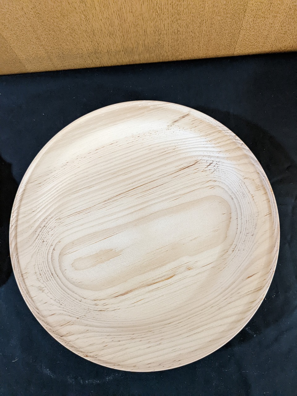 右は銘木を挽き込んだりんとう盆です。