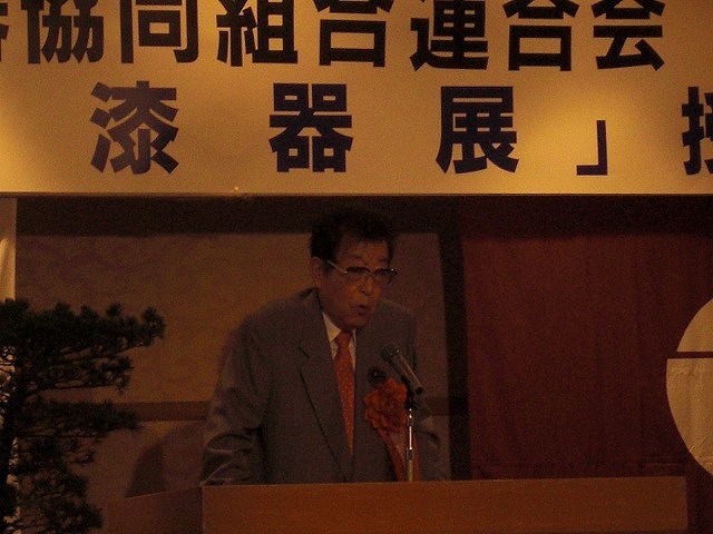 日漆連全国大会に参加してきました。同会場でジャパン(漆)サミットが開催され、わが加賀市から大幸甚市長が出席、プレゼンで大いに語られたとか…! 漆器産地の市長、来賓の列席のもと大会は盛大に行われました。地元ということで来賓に衆議院議員の渡辺恒三氏が駆けつけてこられ、祝辞のなかで例の「 ……この紋所が目に入らぬかぁ〜!!…。」を披露されてました。翌日は会津の木地作りの工房などを見学…。片道7時間 市のマイクロバス(少々狭く、クッッションもいまいち…)での移動だったので疲れました…。