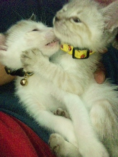 野良猫だったので引き取った時にはおよそ生後3週目で300グラムだった体重が2匹とも今では800グラム…。猫の成長は早い(+o+)