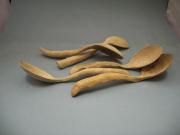 やっと出来ました…。1個1個形も大きさも違いますが、材料は欅で、さじのふちに布巻きをし、さびで目止め、仕上げは木地呂に塗ります。器とともに塗りあがり、仕上がるにはまだ日数が…。半年以上お待ちいただいているので申し訳なくて…。
