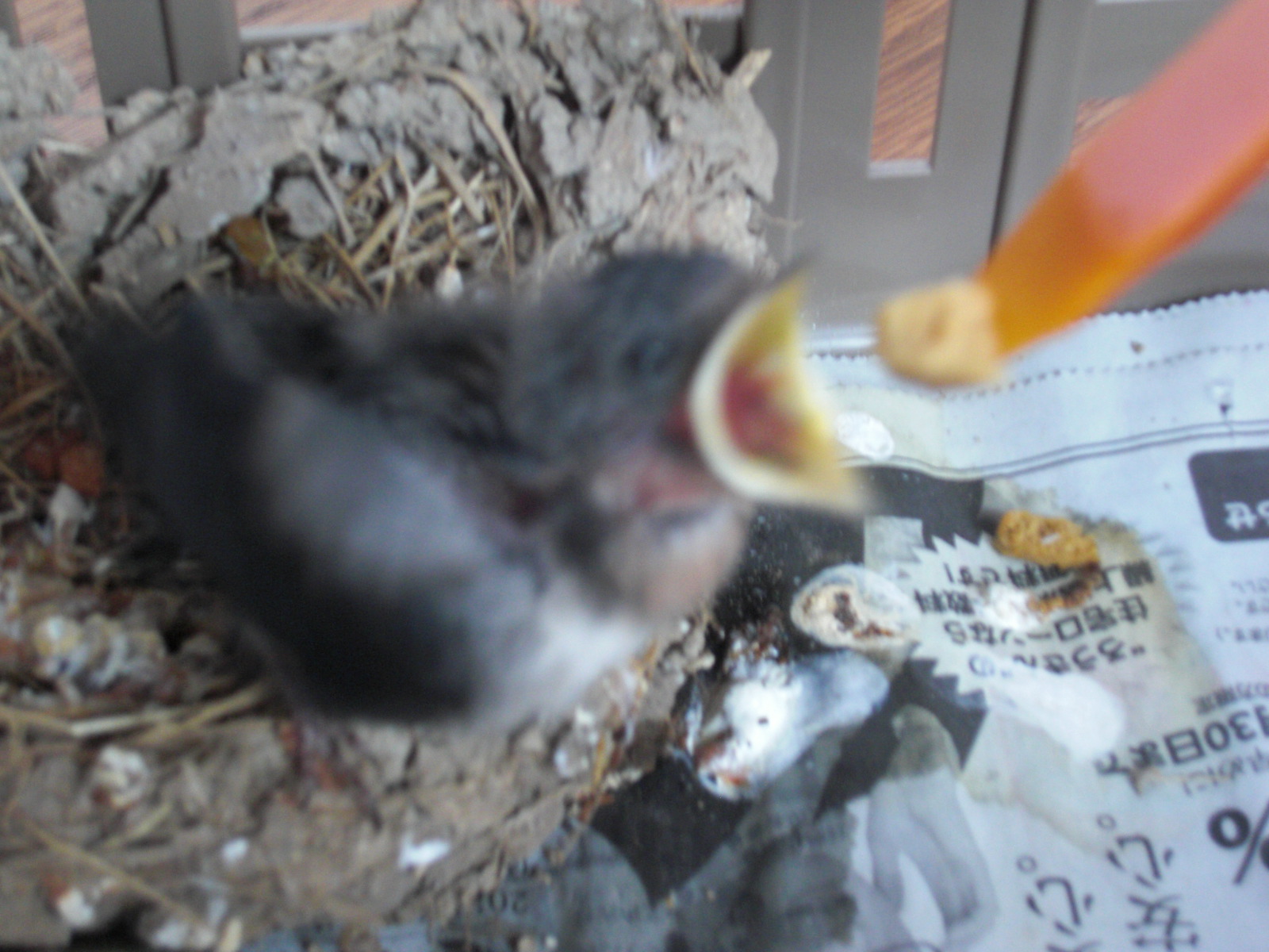 落下したひなをどうしたものか…。