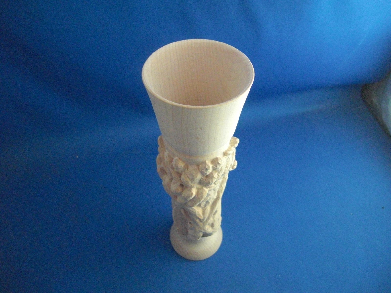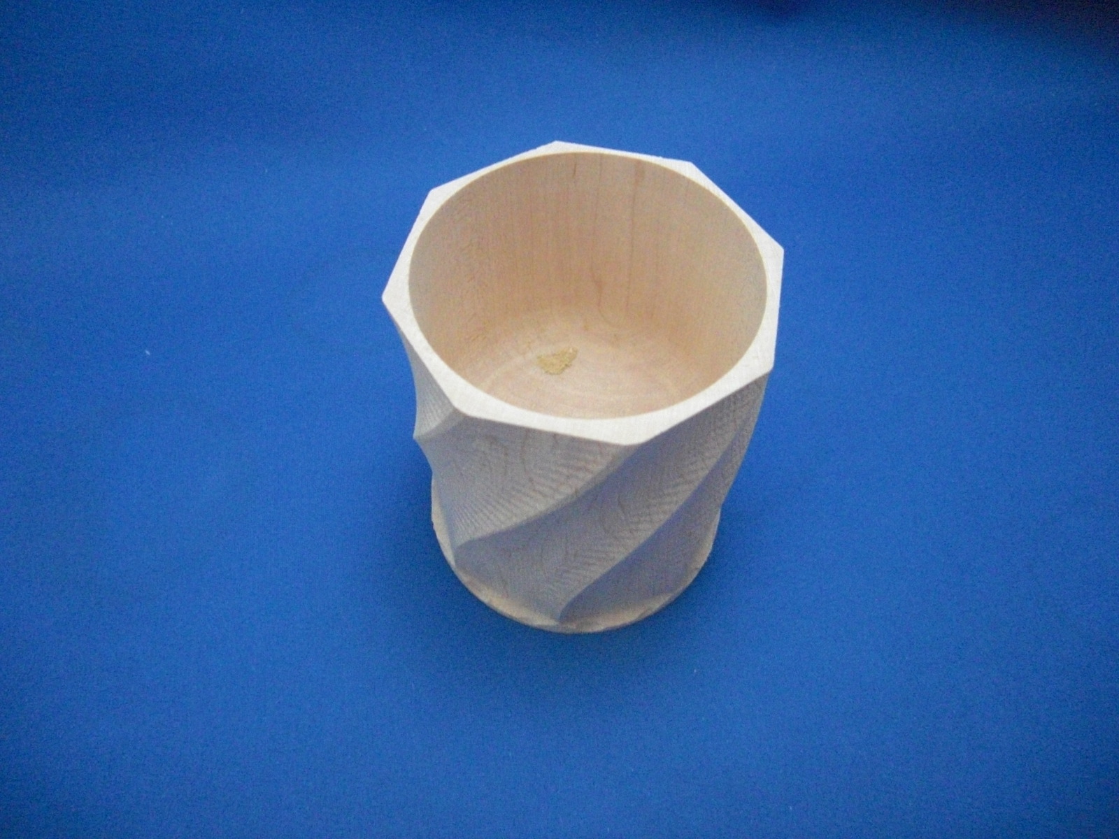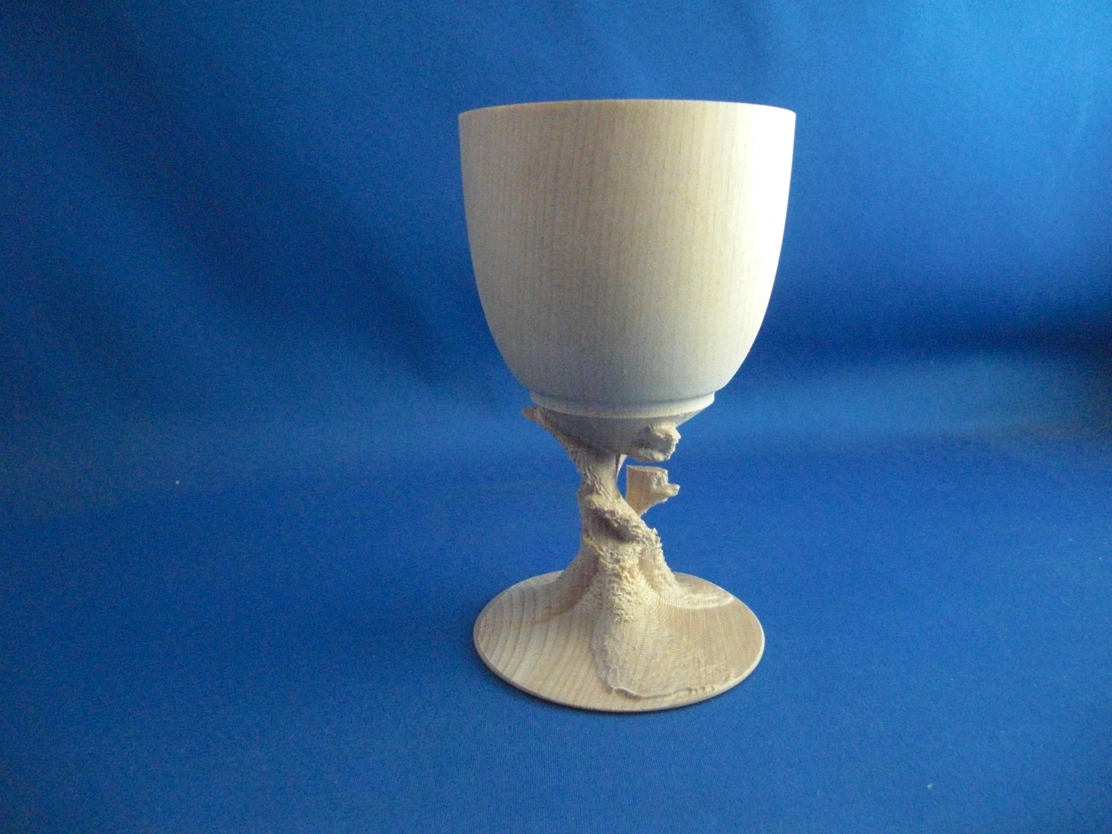 楓材で作った、側面に不思議な形状の彫刻を施した…ロマネスクカップ…。