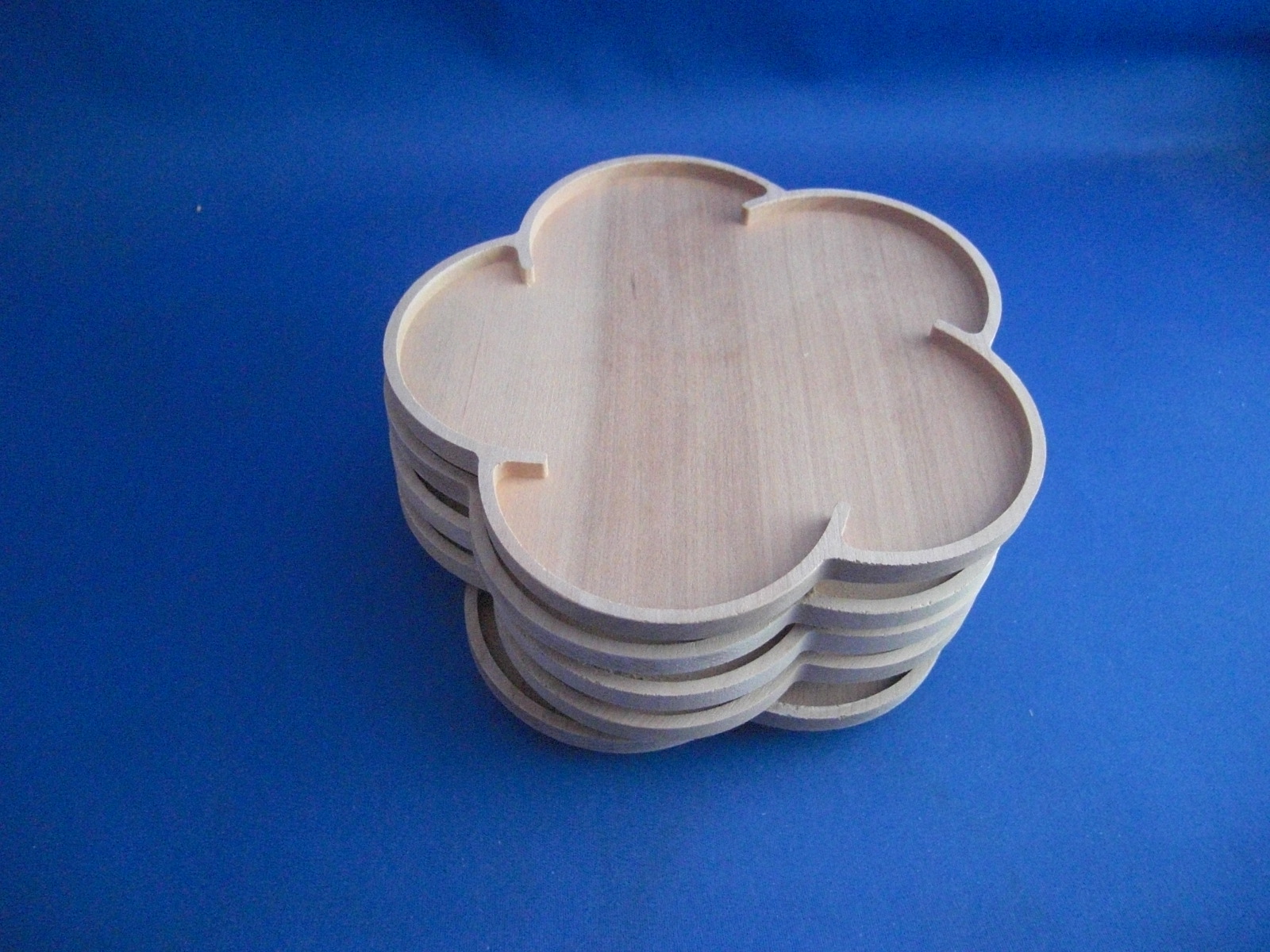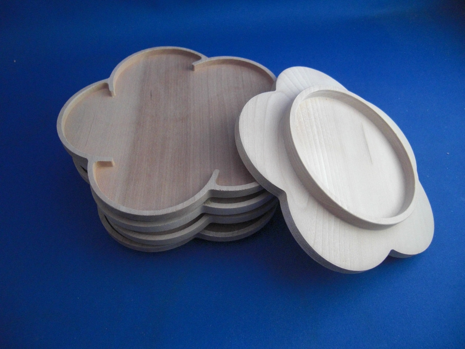 カツラ材で作った梅紋形状に挽き出したお洒落な形状の皿…。