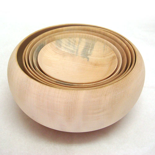 材は軽軟で加工がしやすく挽き物にも多く使われます。挽き物全般に使われますが乾燥しやすく軽いため白太部分を使って大きな物を挽く時に多く使われています。